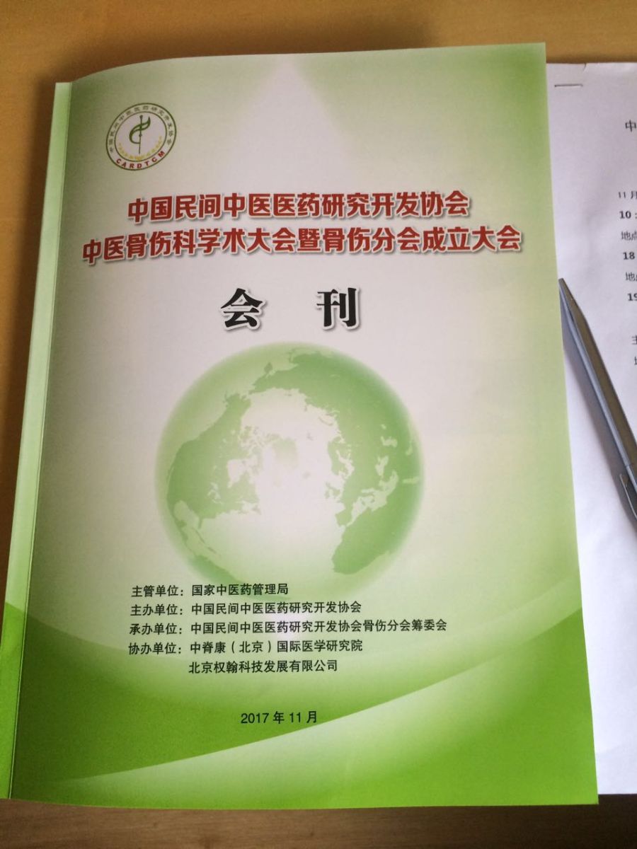 中国民间中医医药研究开发协会中医骨伤科学术大会暨骨伤分会成立大会即将开幕。本中心许荣达主任的论文《宁坤舒颈方配合龙氏正骨手法治疗椎动脉型颈椎病的疗效观察》入选大会优秀论文集,届时将受邀出席大会并担任大会的常务委员,与此同时,许荣达主任还推荐两名青年才俊医师参加本次会议,澄海人民医院骨伤科门诊负责人胡宛涛主治医师和许荣达脊柱病康复中心邓声吉医师,他们将共同见证大会的盛况。期待前方继续发来大会的讯息!